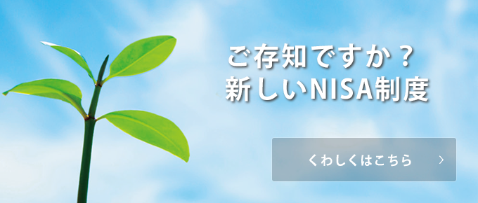- NISA制度の目的(安定的な資産形成)に適したものに限られており、当行で取扱っている公募株式投資信託等のうち、信託期間20年未満、毎月分配型、デリバティブ取引を用いた一定の投資信託等は除外されています。最新の対象商品は、当行窓口またはホームページにてご確認ください。