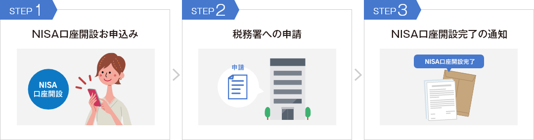 通常、NISA口座は金融機関での申込み後、税務署での「非課税適用確認(重複口座がないか等の確認)」が完了してから本開設となるため、利用開始まで数週間程度の期間が必要です。