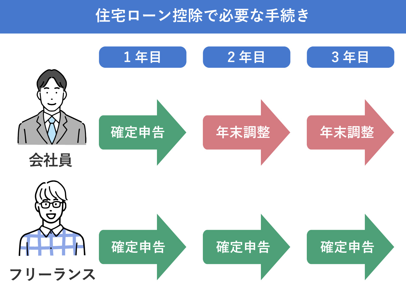会社員の場合は、2年目以降は会社で行う年末調整の際に、住宅ローン控除の手続きができます。