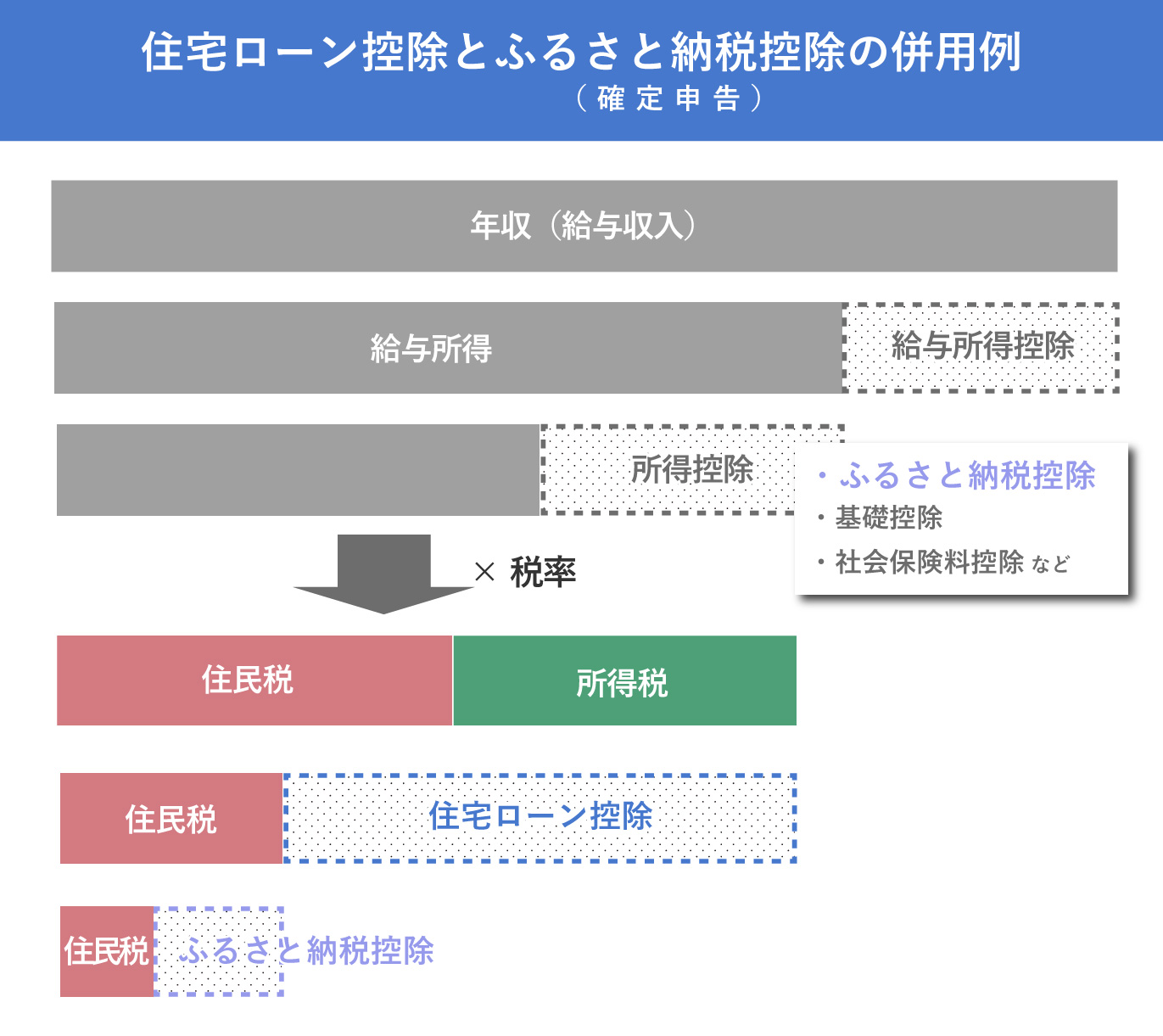ふるさと納税控除と、住宅ローン控除は、ともに所得税と住民税から控除される制度であり、基本的には併用可能です。