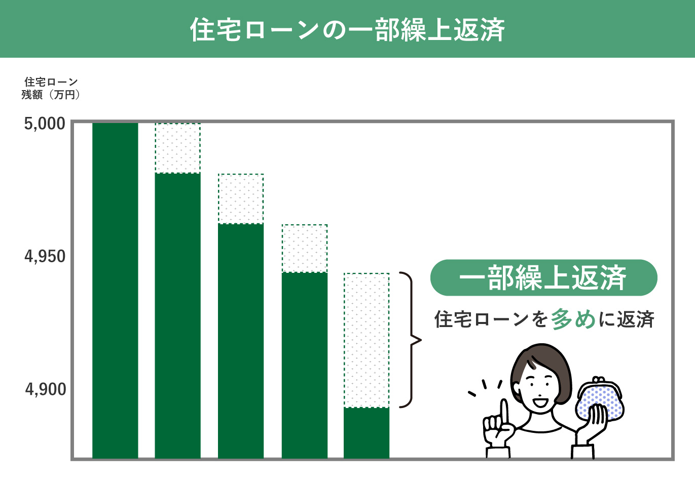 繰上返済は、月々のローン返済とは別に元金の一部または全部を前倒しで返済する方法のことです。