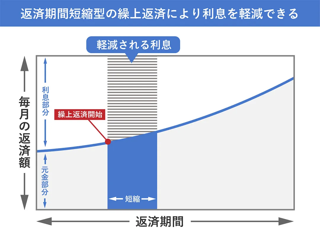 返済期間短縮型は、月々の返済額はそのままで、返済期間を短縮する方法です。
