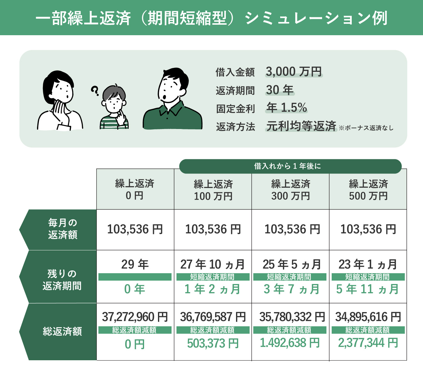 ただし、返済期間は短縮されますが、月々の返済額は変わらないという点には注意が必要です。