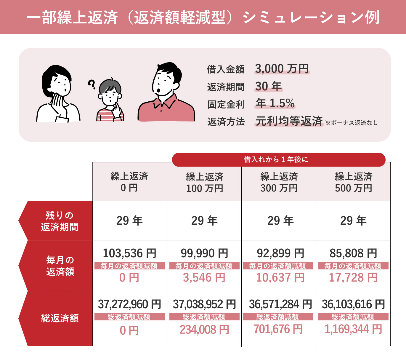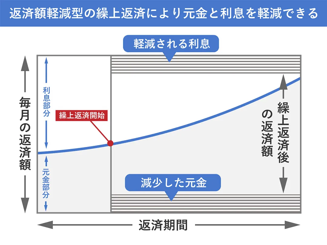 返済額軽減型は、返済期間は変えずに毎月の返済額を軽減する繰上返済の方法です。