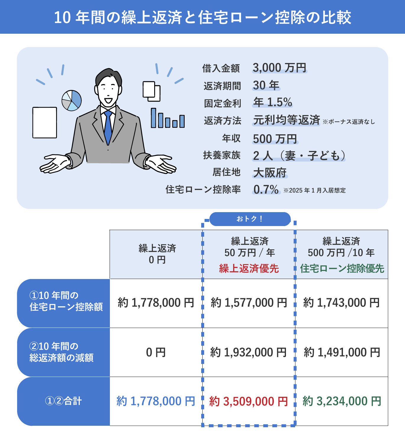 どちらを選ぶかによって、将来的な返済額の負担や減らせる総返済額が大きく変わります。