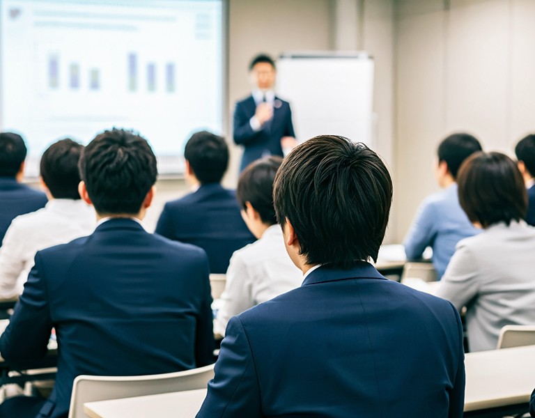 全社的な研修計画に基づき、階層別・テーマ別の集合研修を実施しています。社外研修への派遣も行っており、一部は公募制で希望者が参加できる仕組みです。行動変革や継続的な学びを促すための意識づけ・動機づけを目的としています。