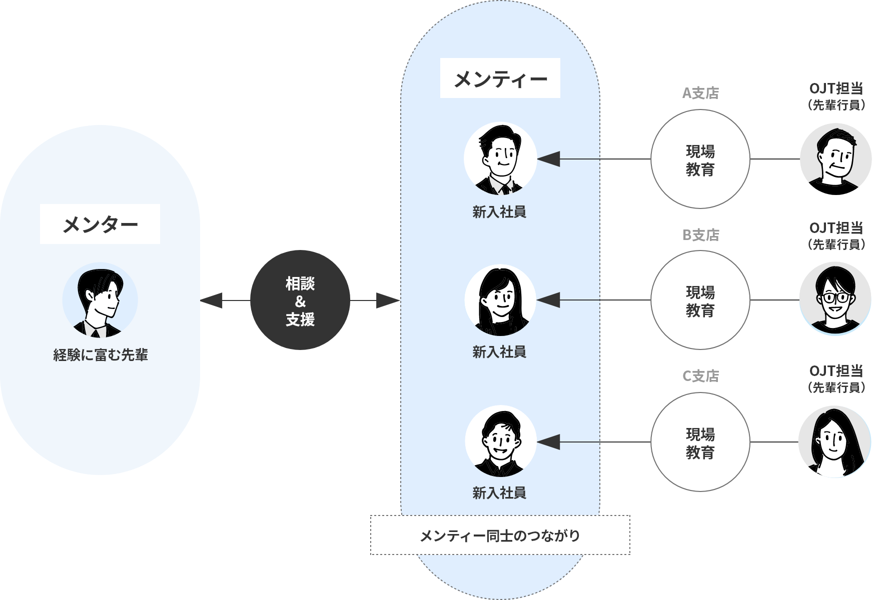 - ◎自分が経験してきた思いや成功談をもとにアドバイスをしたり、逆にメンティの話から新入職員の悩みを知り、自分自身の考えを見直して営業店で生かすことができたりと、相乗効果が感じられ、後輩育成やマネジメントのスキル向上が図れました。